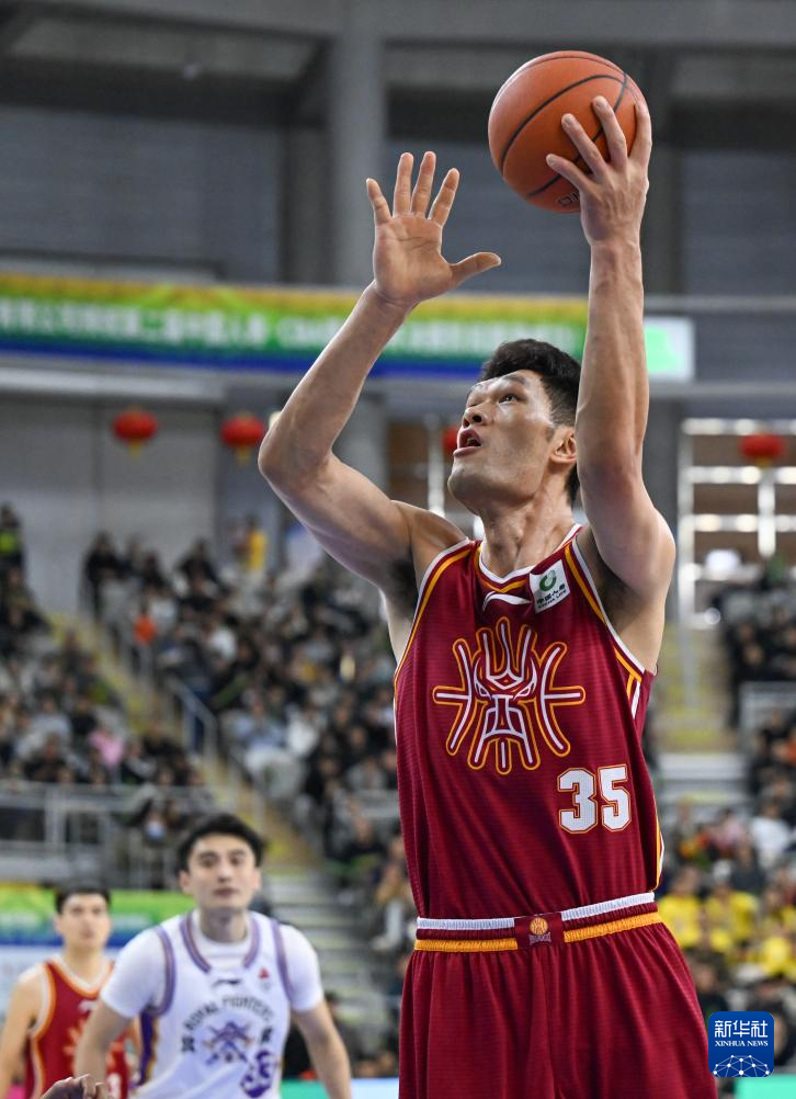 2月7日,山西汾酒队球员葛昭宝在比赛中投篮。