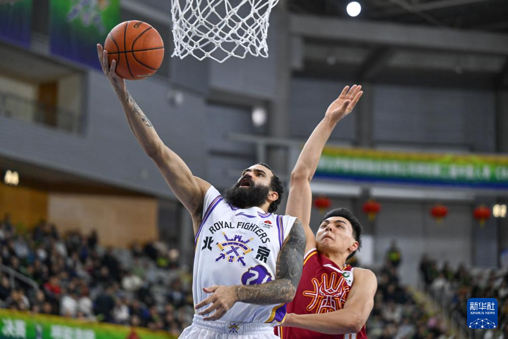 2月7日,北京控股队球员里勒(左)在比赛中上篮。