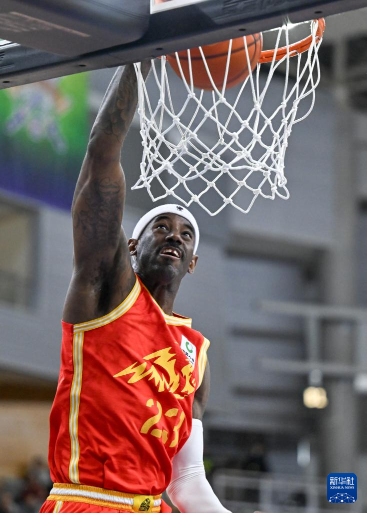 2月7日,浙江方兴渡队球员桑普森在比赛中扣篮得分。