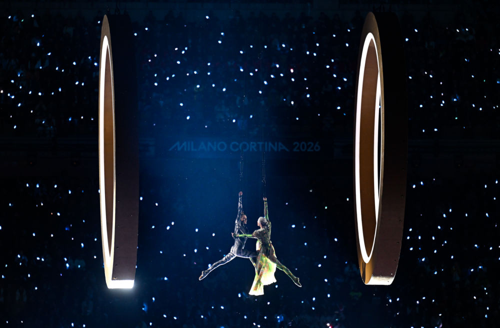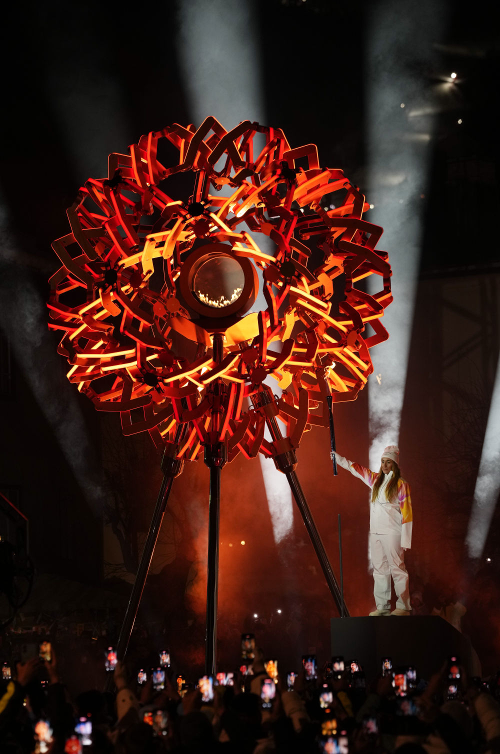↑主火炬在米兰和平拱门和科尔蒂纳迪博纳广场同步点燃。