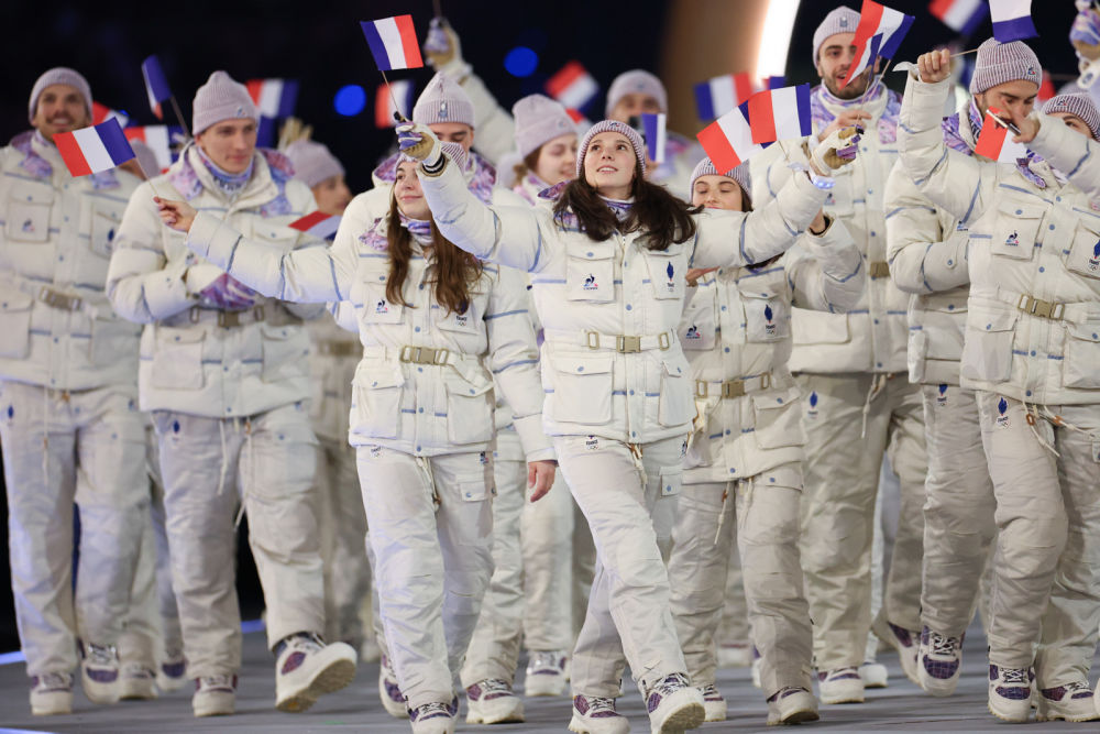 ↑法国体育代表团在开幕式上入场。