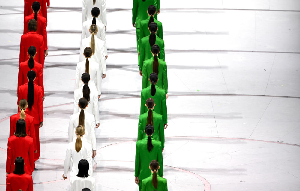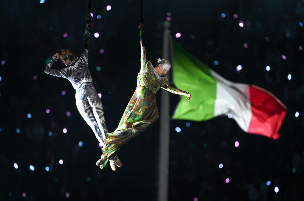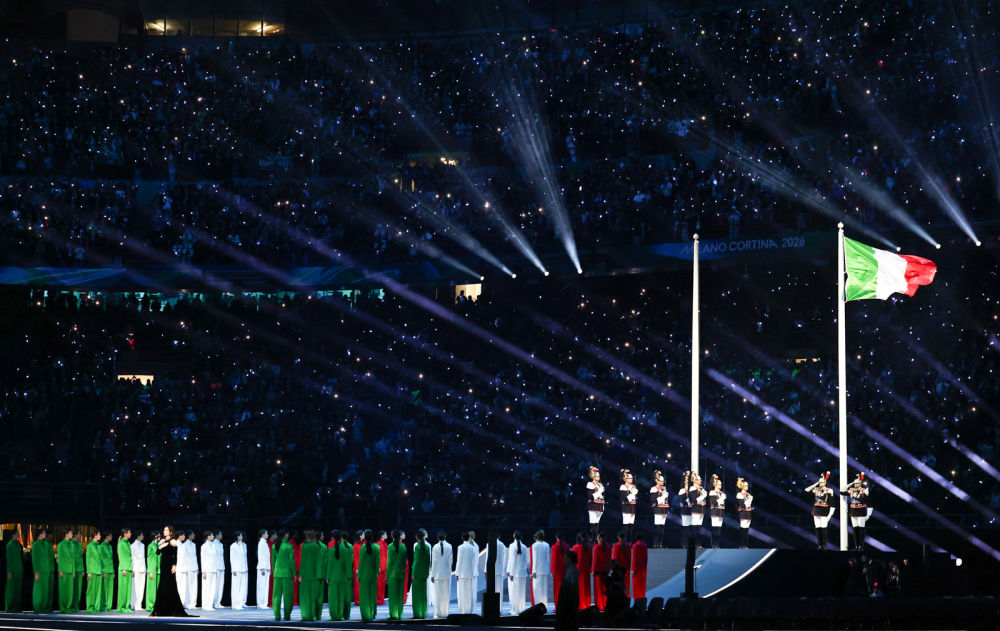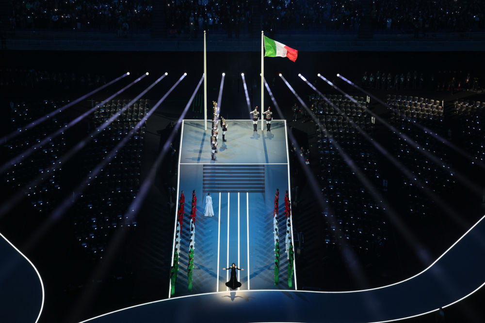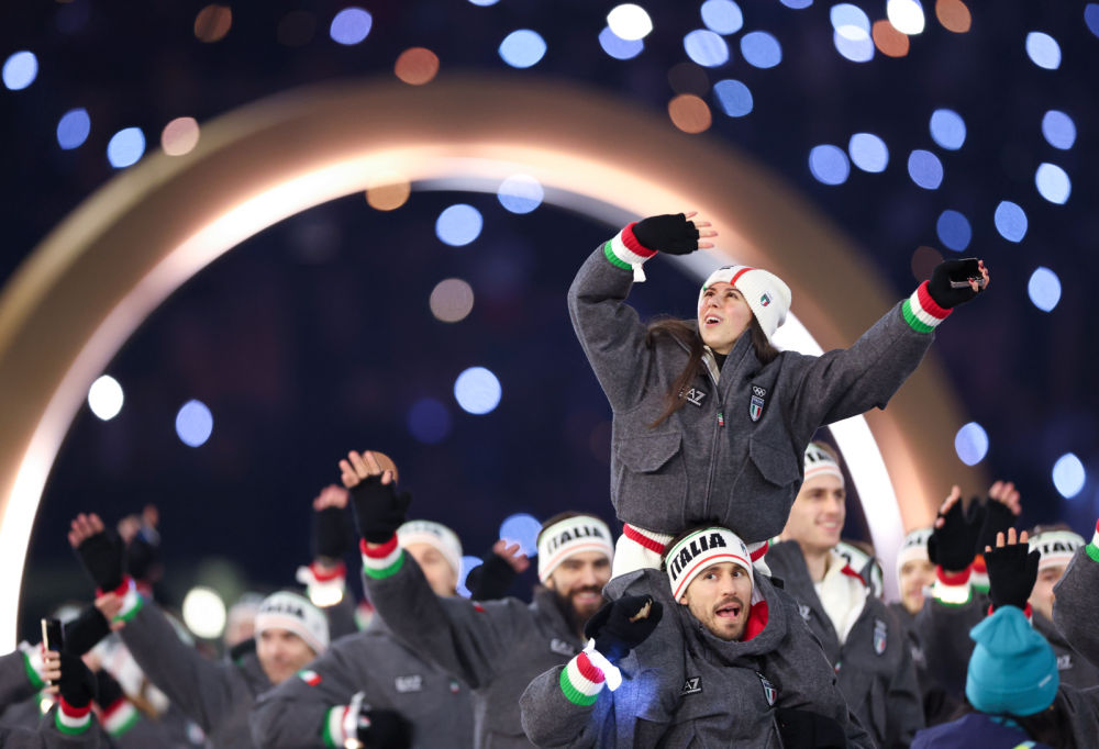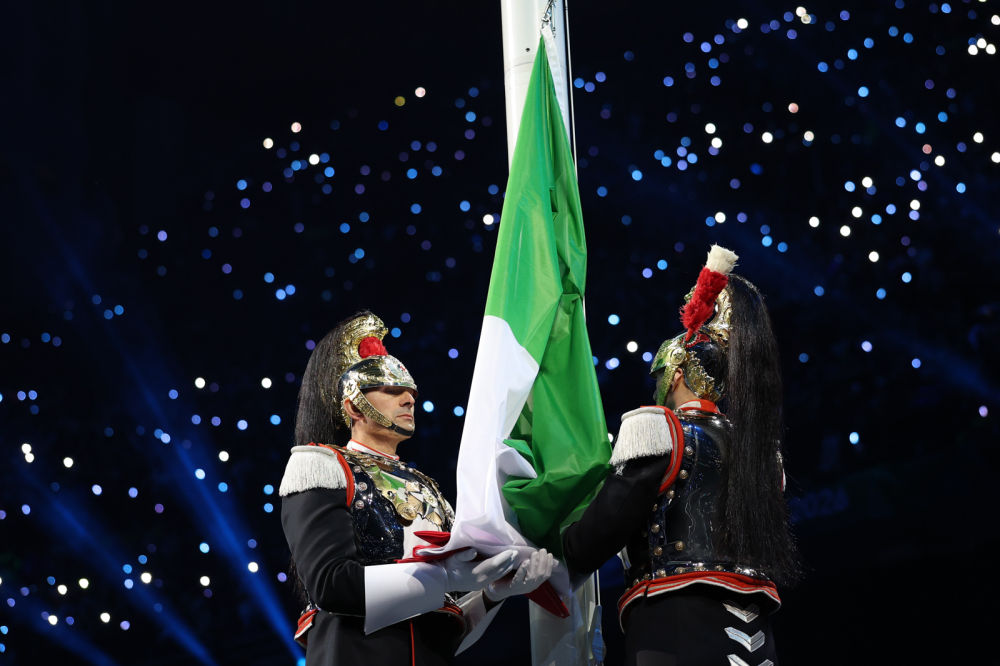 ↑意大利体育代表团在开幕式上入场。