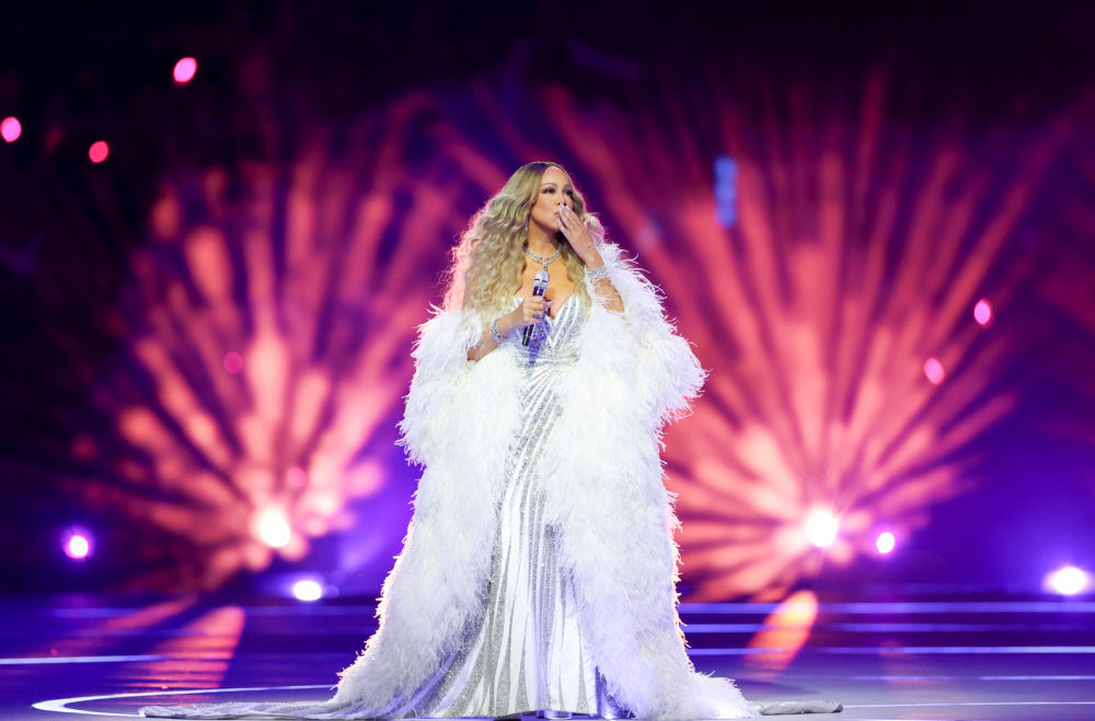 ↑美国歌手玛丽亚·凯莉在开幕式上表演。