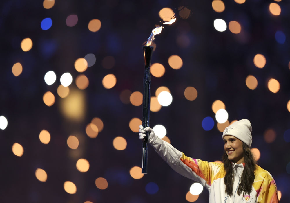 ↑火炬手在开幕式上。