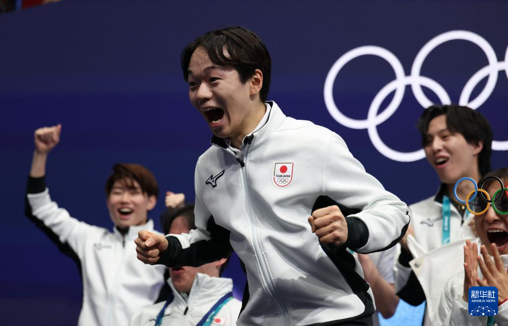 2月7日,日本队选手键山优真得知成绩后庆祝。
