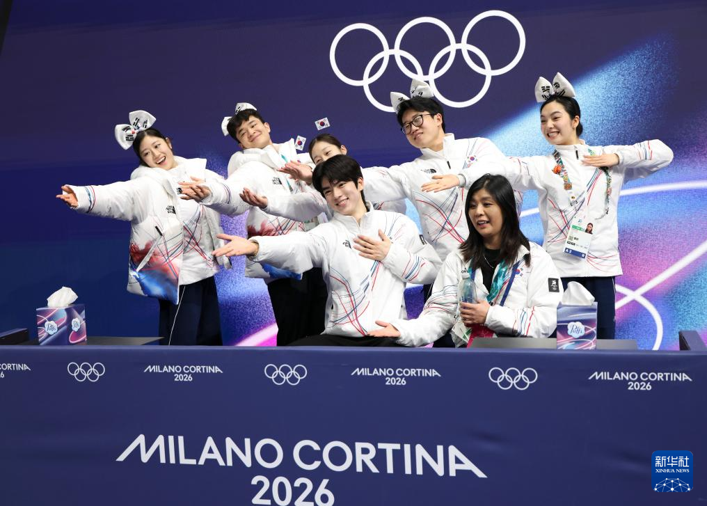 2月7日,韩国队选手和教练在比赛间隙。