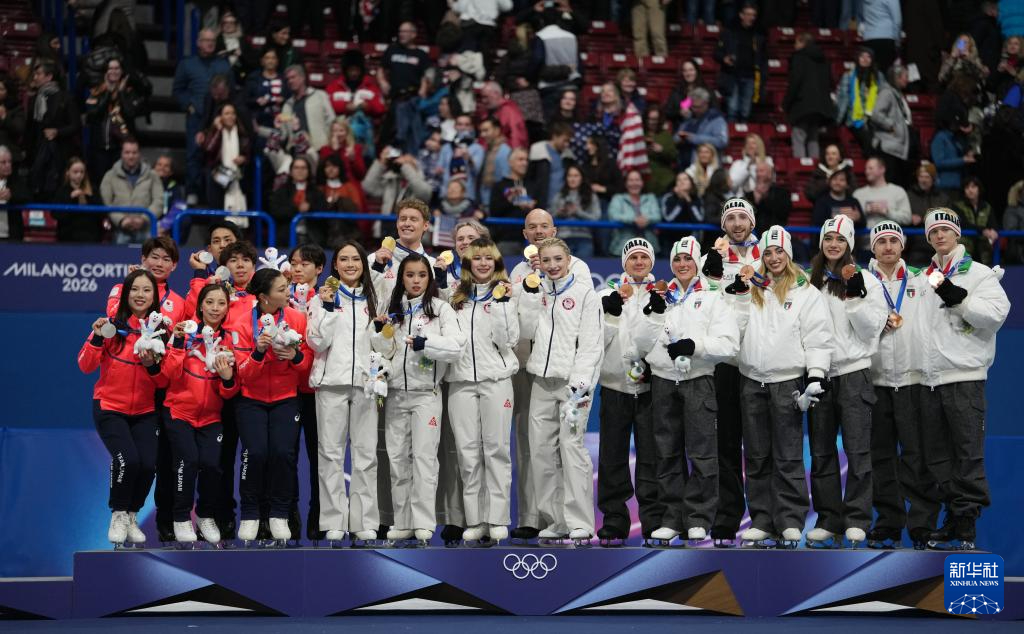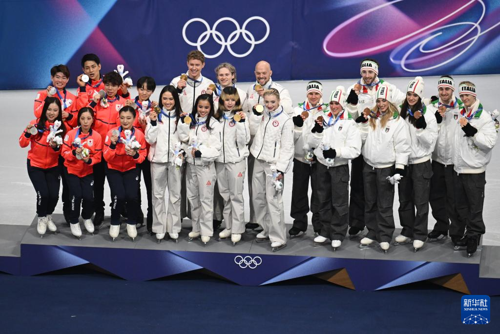 当地时间2月8日,米兰-科尔蒂纳冬奥会花样滑冰项目团体赛在意大利米兰举行。美国队获得冠军,日本队获得亚军,意大利队获得季军。