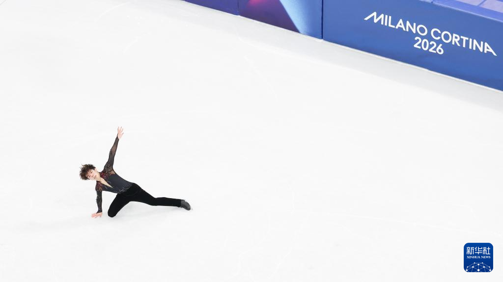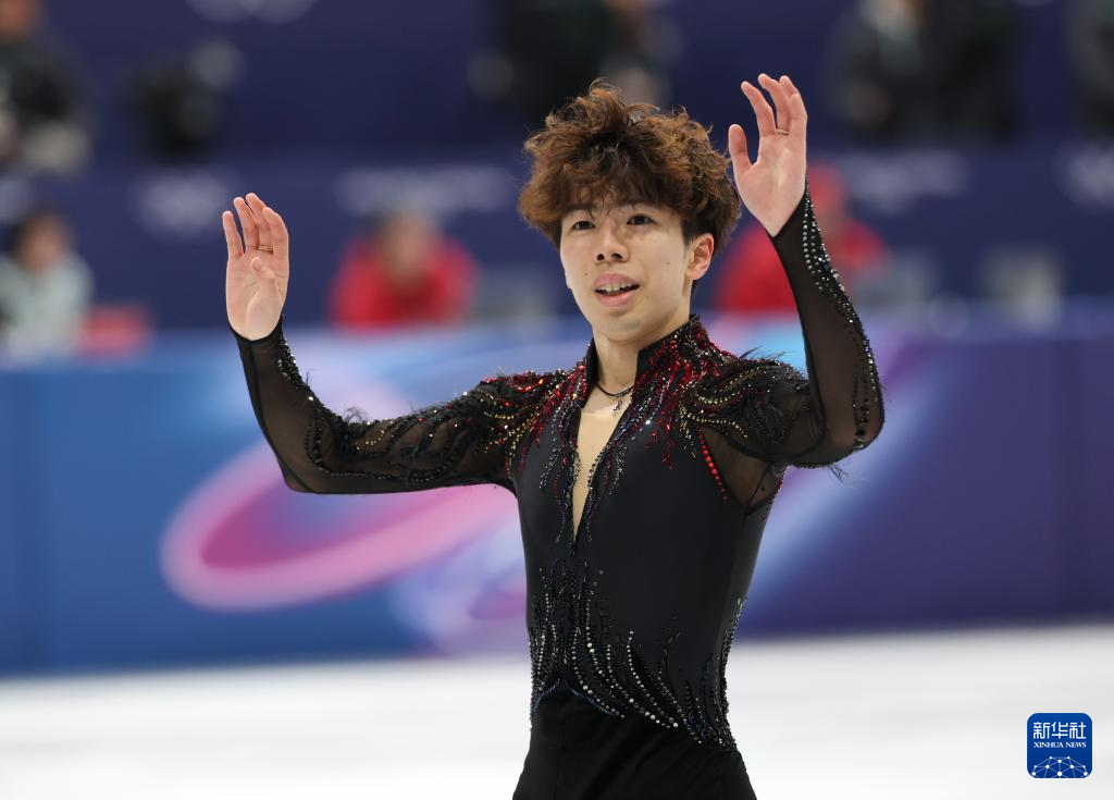2月8日,日本队选手佐藤骏在团体赛男单自由滑比赛中。