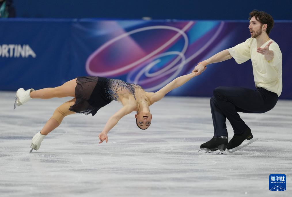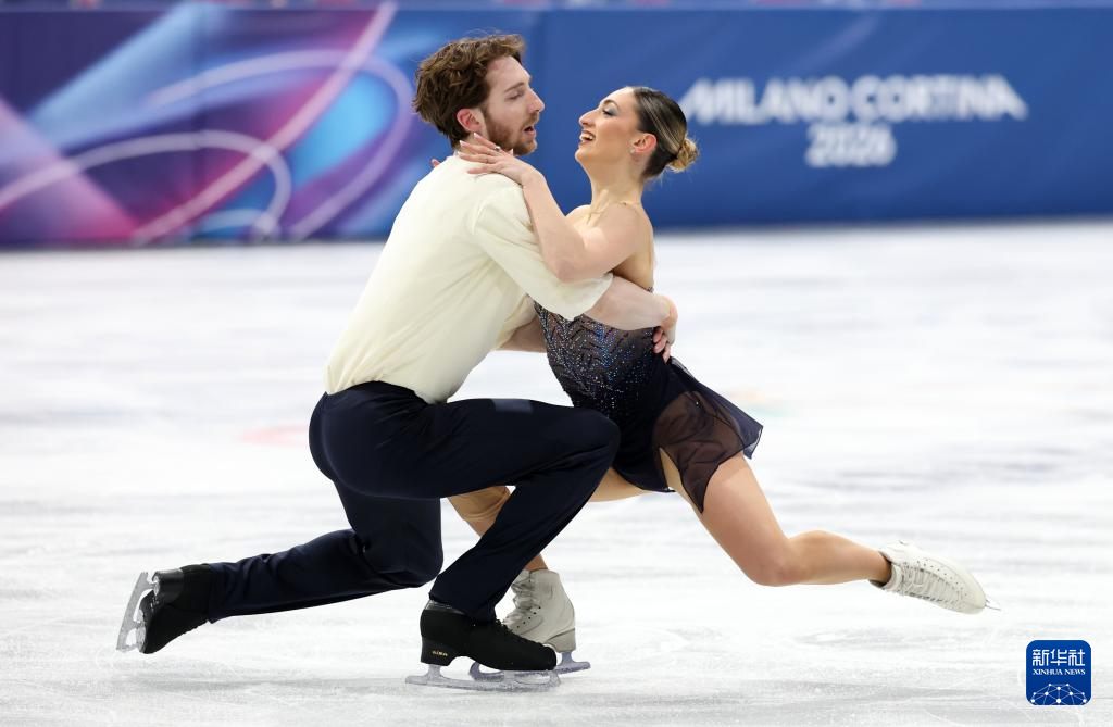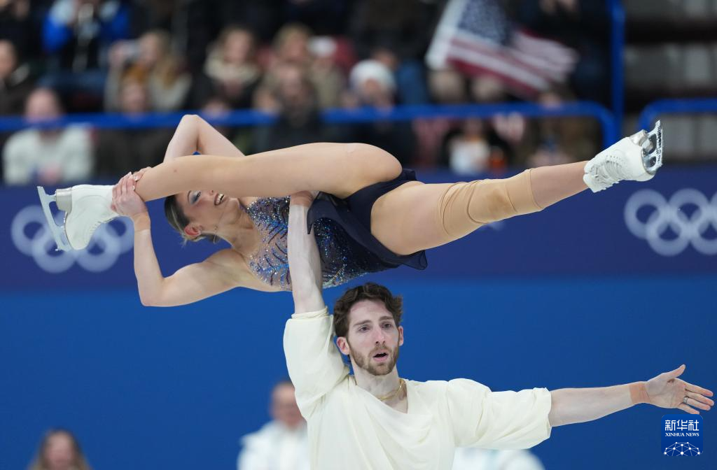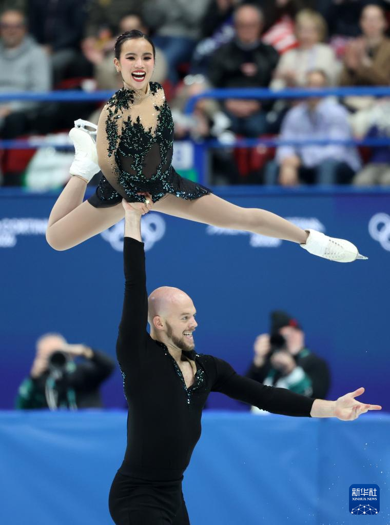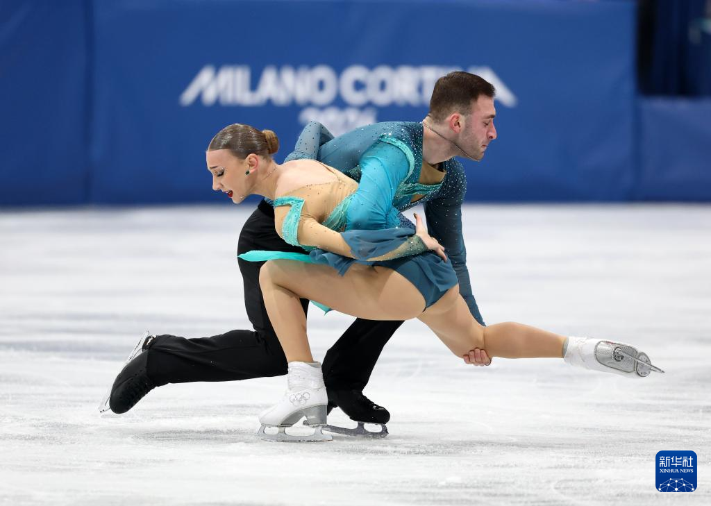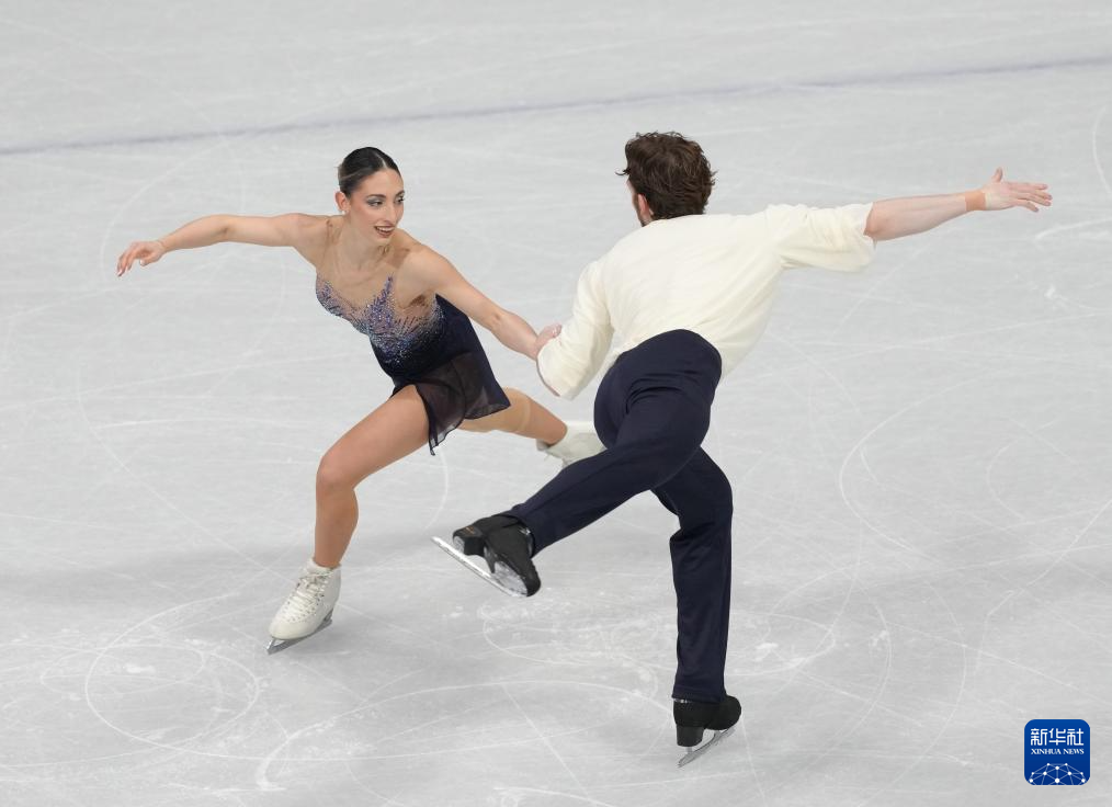 2月8日,意大利队组合萨拉·孔蒂(右)/尼科洛·马西在团体赛双人滑自由滑比赛中。