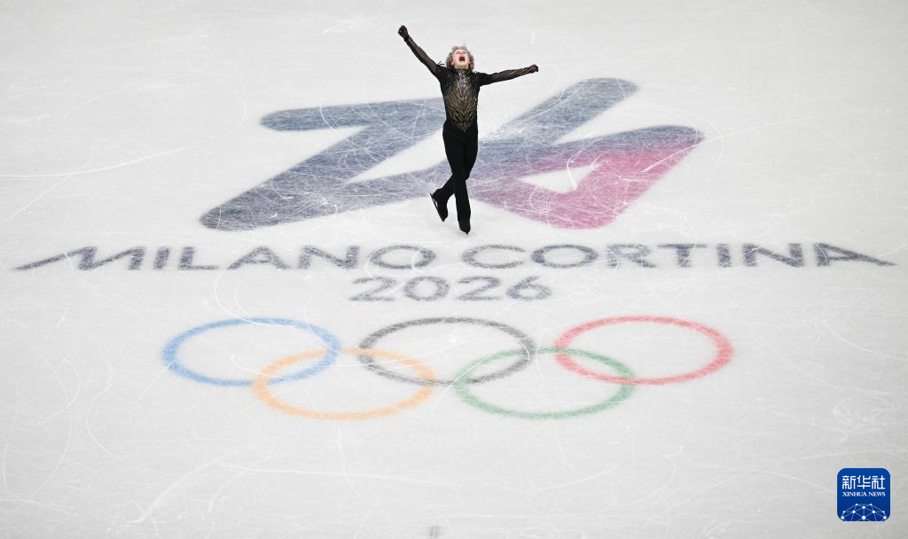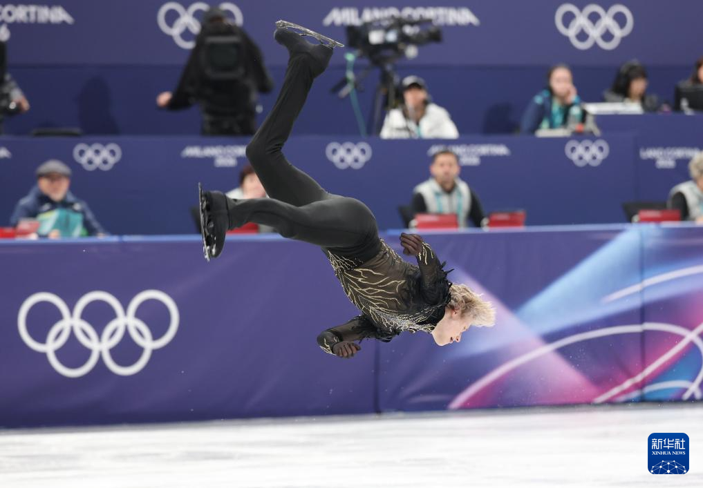 2月8日,意大利队选手里佐在团体赛男单自由滑比赛中。
