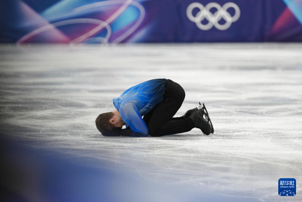 2月8日,日本队选手佐藤骏在团体赛男单自由滑完赛后。