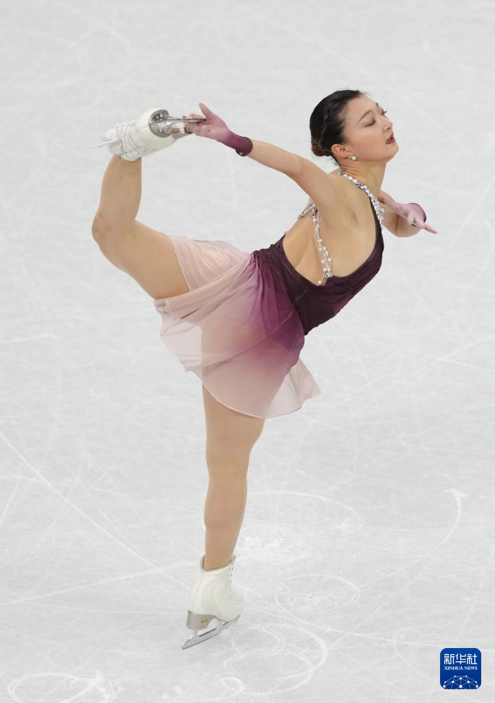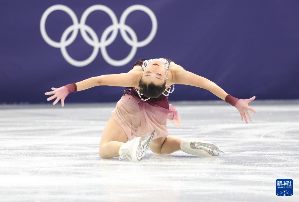 2月8日,日本队选手坂本花织在团体赛女单自由滑比赛中。