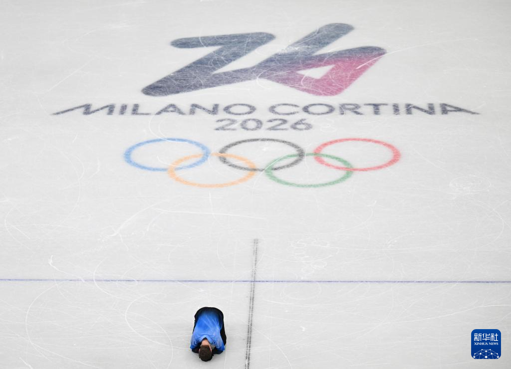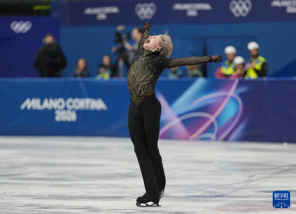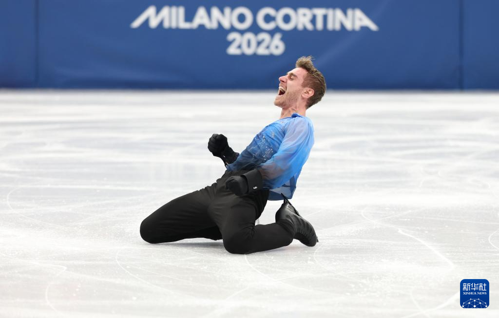2月8日,意大利队选手里佐在团体赛男单自由滑完赛中。