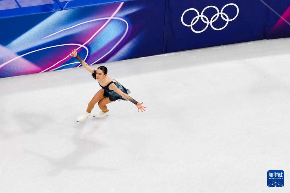 2月8日,意大利队选手古特曼在团体赛女单自由滑比赛中。