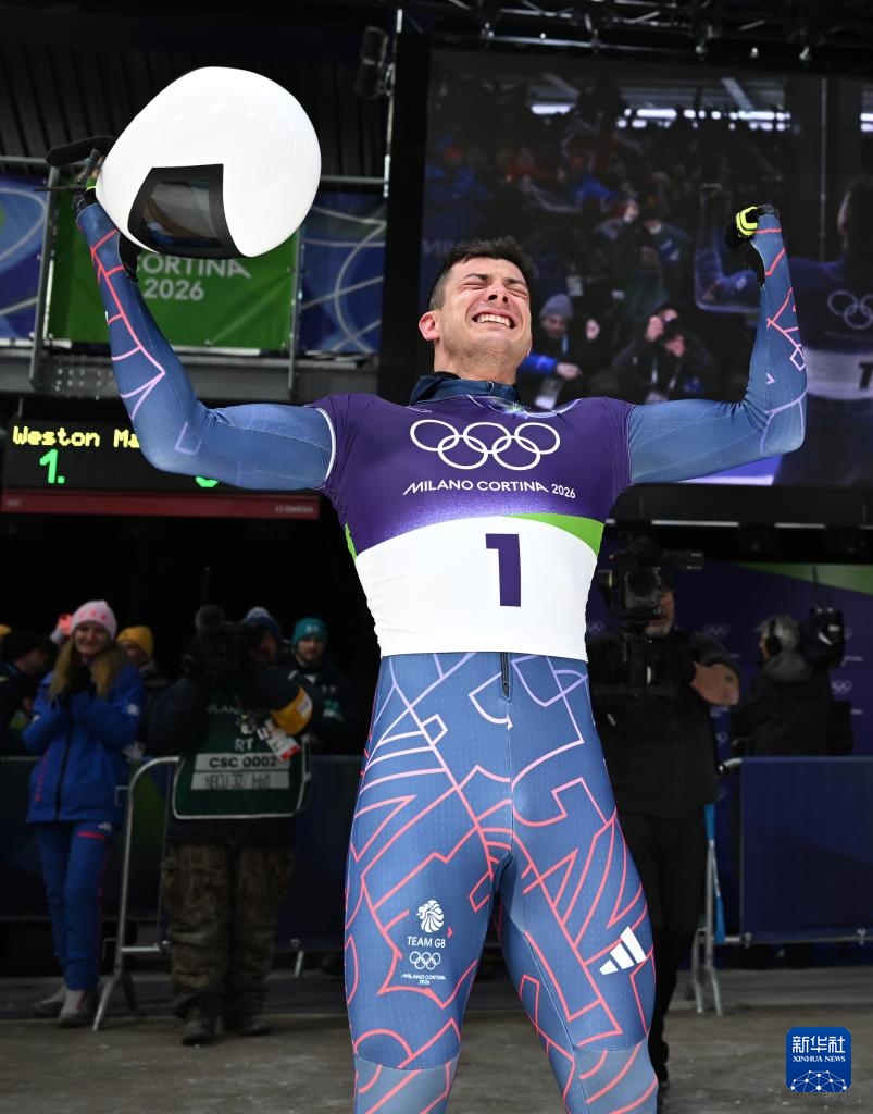 2月13日,英国选手韦斯顿在比赛后庆祝。他获得冠军。