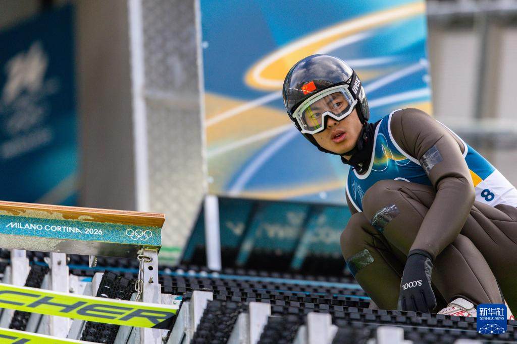 2月17日,中国选手赵子贺在北欧两项个人大跳台试跳轮中。