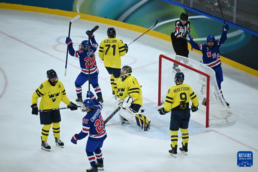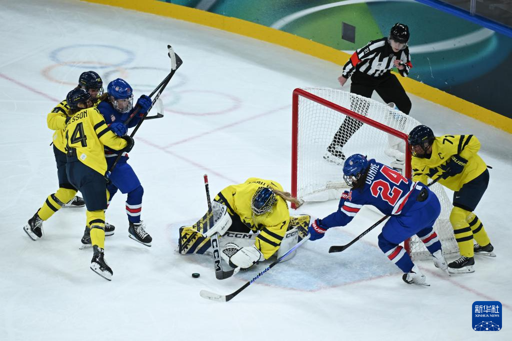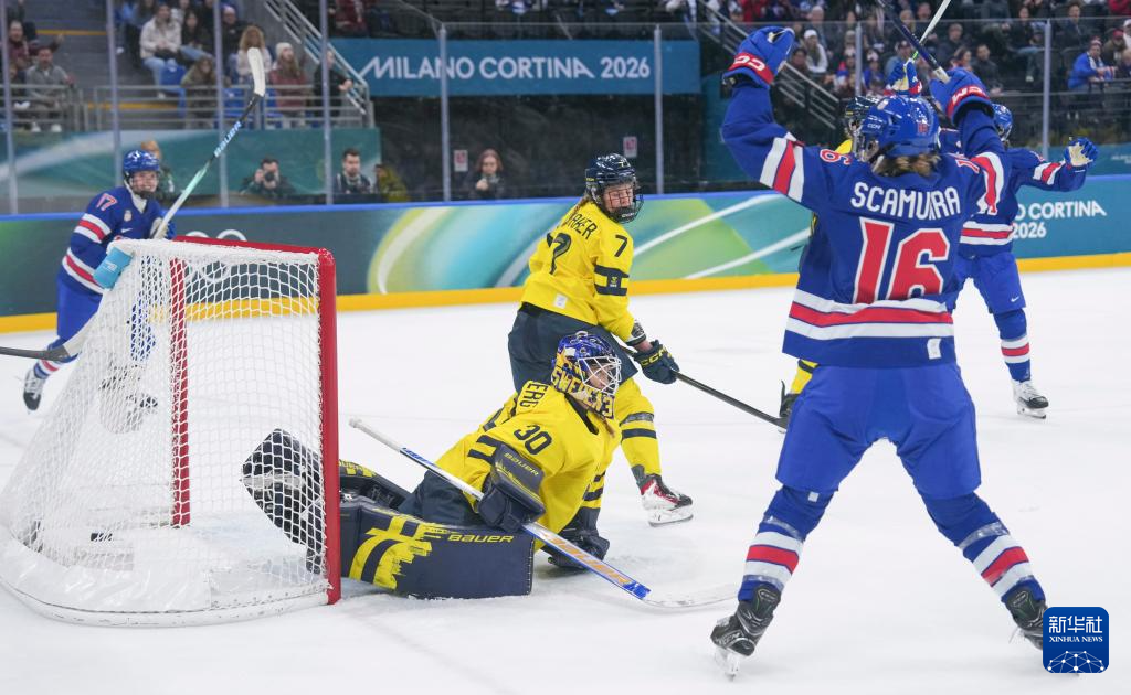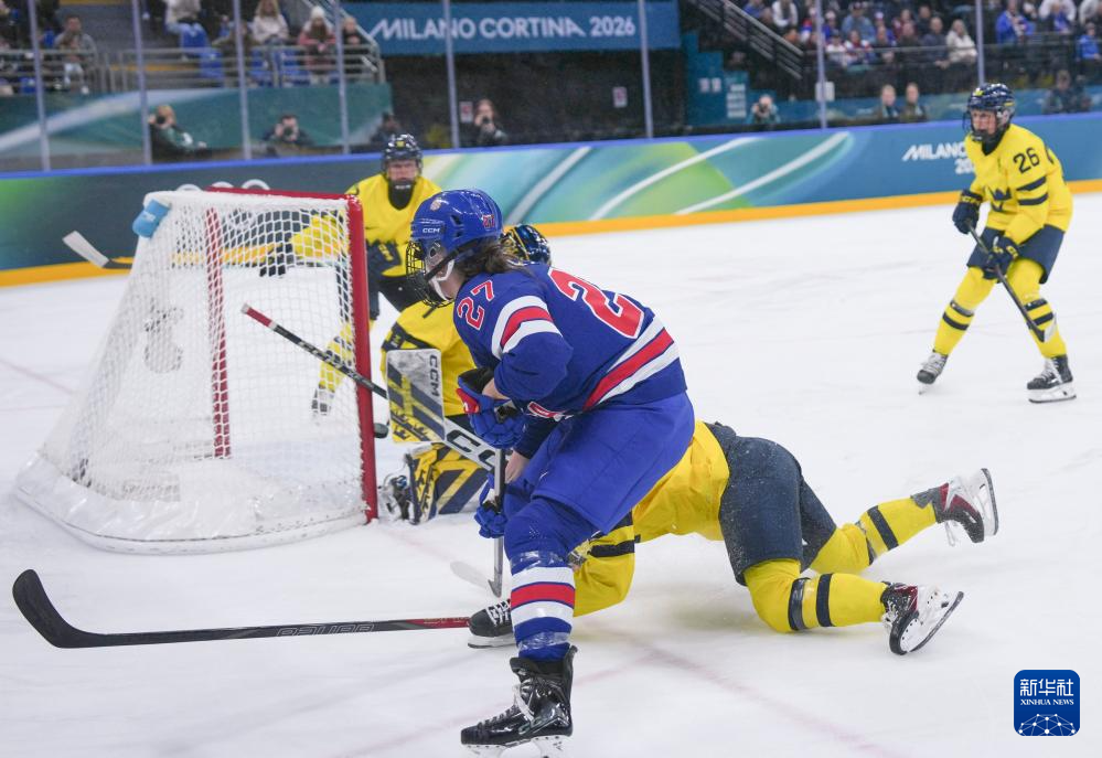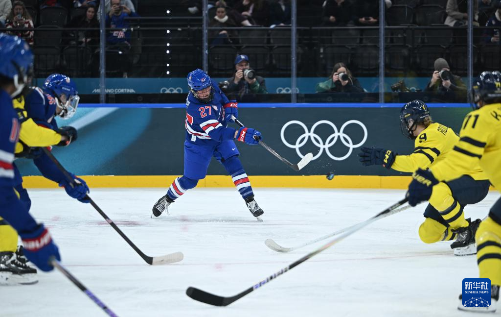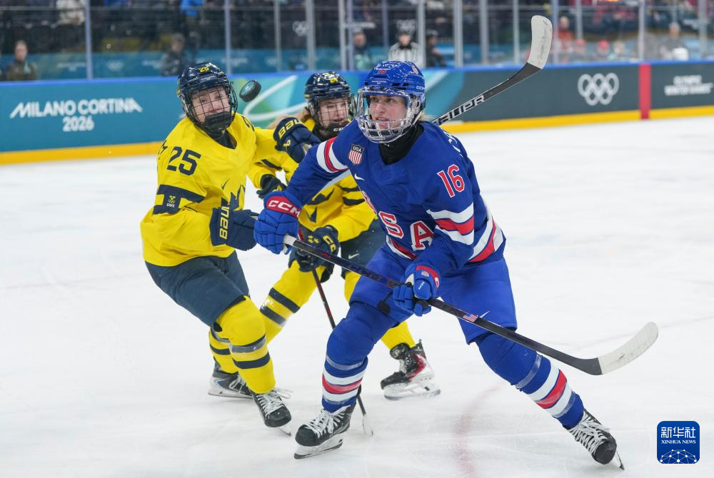当地时间2月16日,在意大利米兰举行的米兰-科尔蒂纳冬奥会冰球项目女子半决赛中,美国队5比0战胜瑞典队。