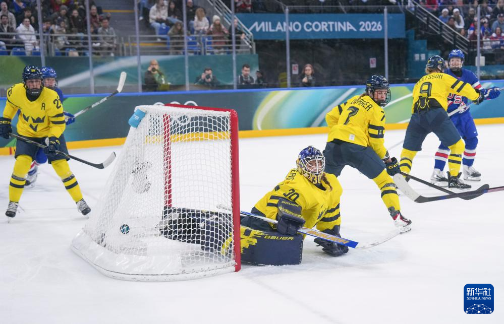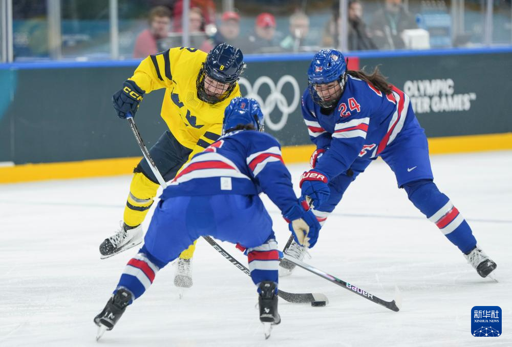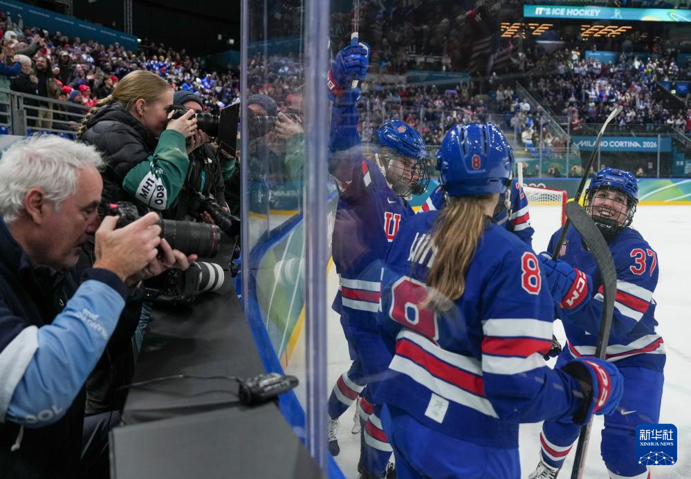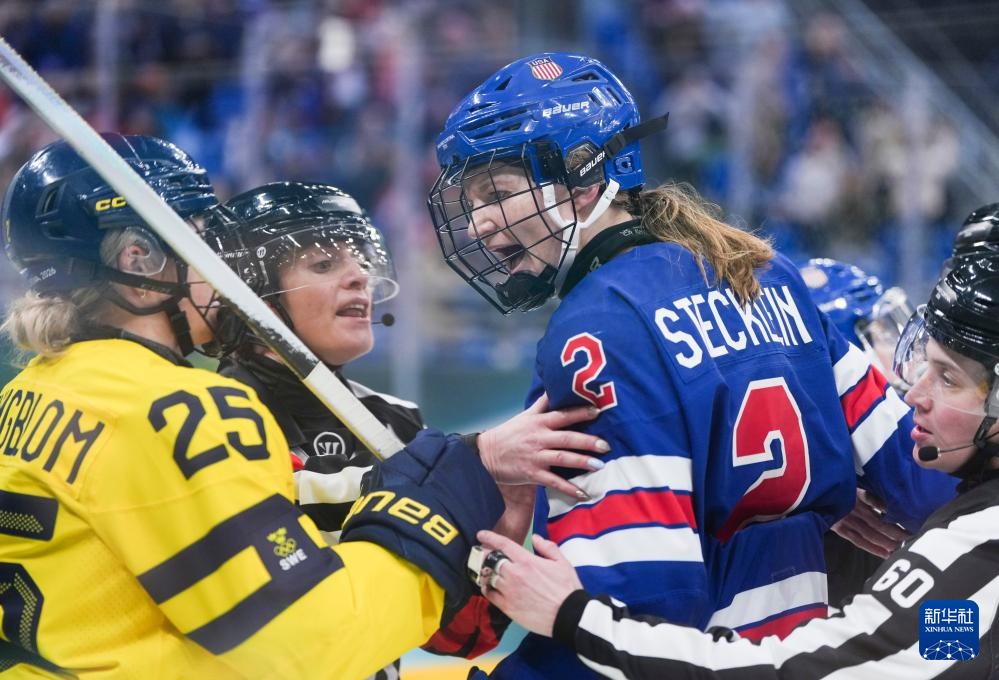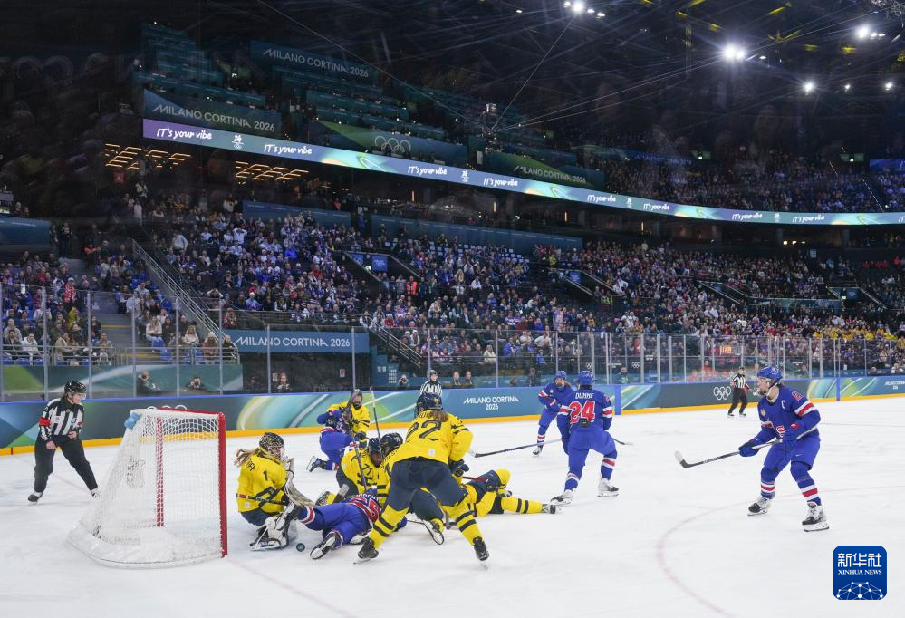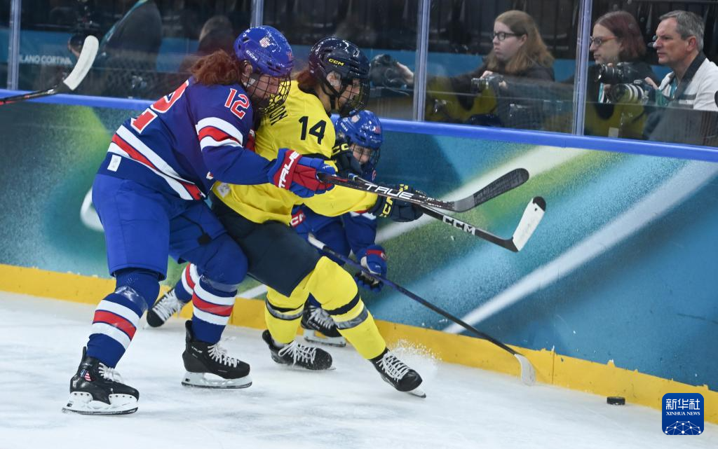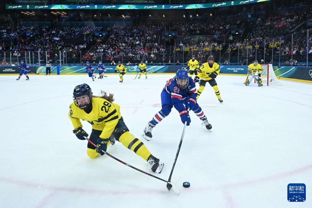 当地时间2月16日,在意大利米兰举行的米兰-科尔蒂纳冬奥会冰球项目女子半决赛中,美国队5比0战胜瑞典队。