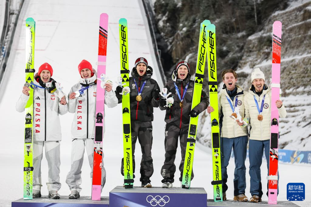 当地时间2月16日,米兰—科尔蒂纳冬奥会跳台滑雪项目男子超级团体比赛在意大利普雷达佐举行。