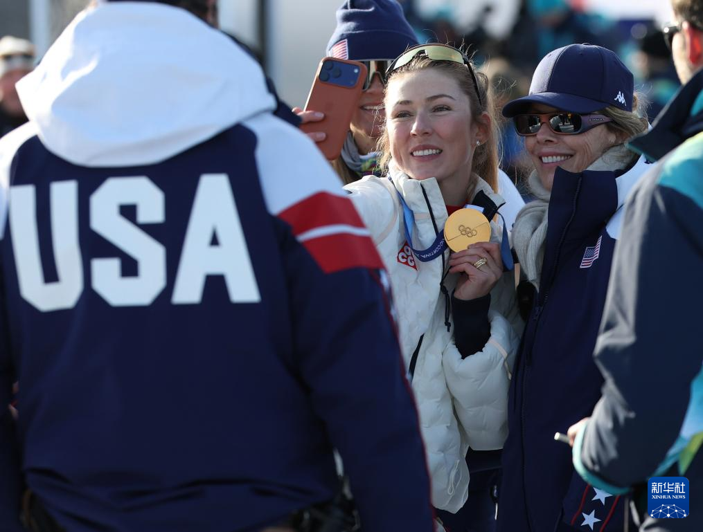 2月18日,美国选手希夫林在第一轮比赛中。她获得冠军。
