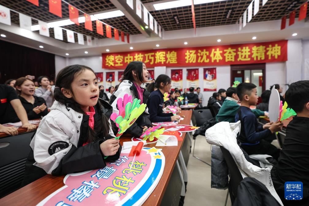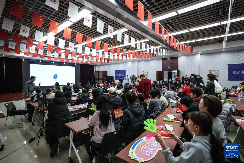2月18日,沈阳体育学院的师生在观看比赛直播。