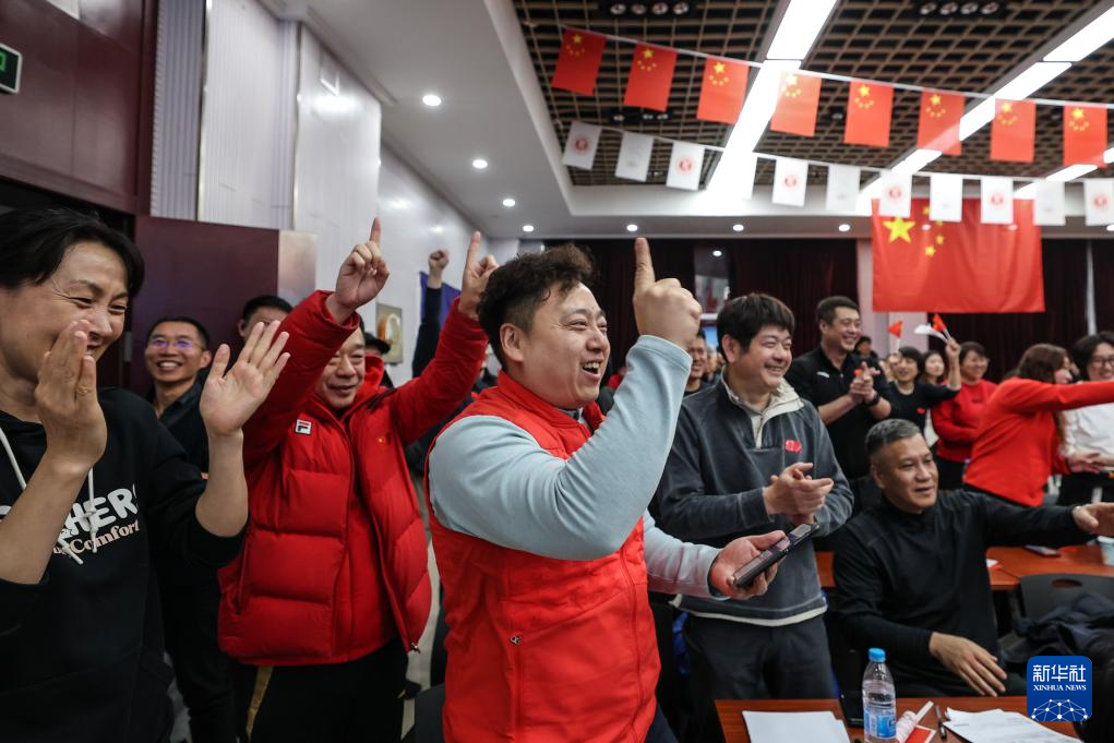 2月18日,沈阳体育学院教师庆祝徐梦桃夺冠。
