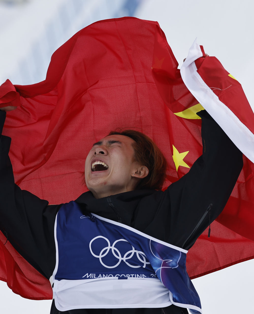 当地时间2月18日,中国选手苏翊鸣夺得米兰-科尔蒂纳冬奥会单板滑雪男子坡面障碍技巧冠军。