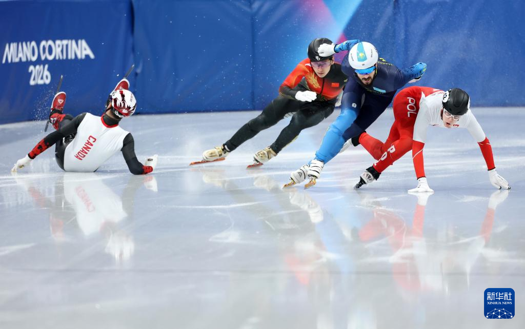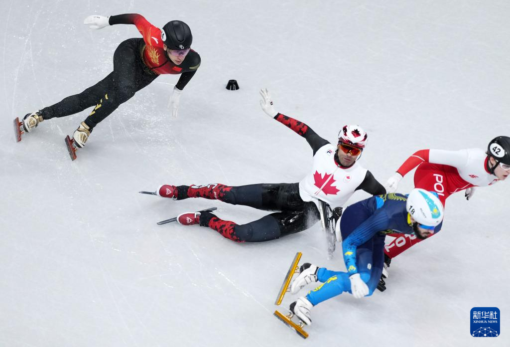 2月18日,中国队选手刘少昂(右三)在比赛中。