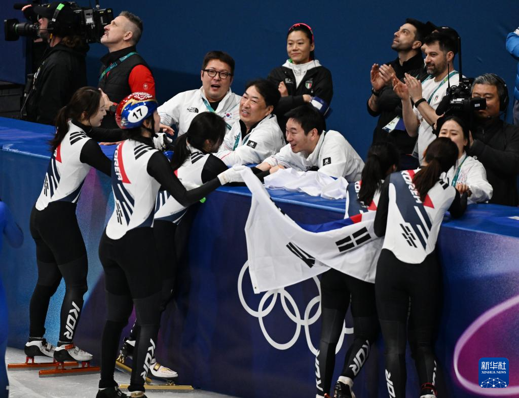 当地时间2月18日,在米兰-科尔蒂纳冬奥会短道速滑女子3000米接力A组决赛中,韩国队、意大利队和加拿大队分获冠、亚、季军。