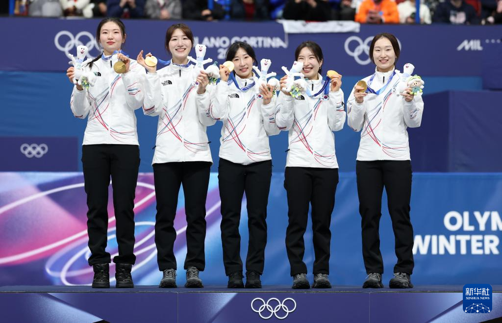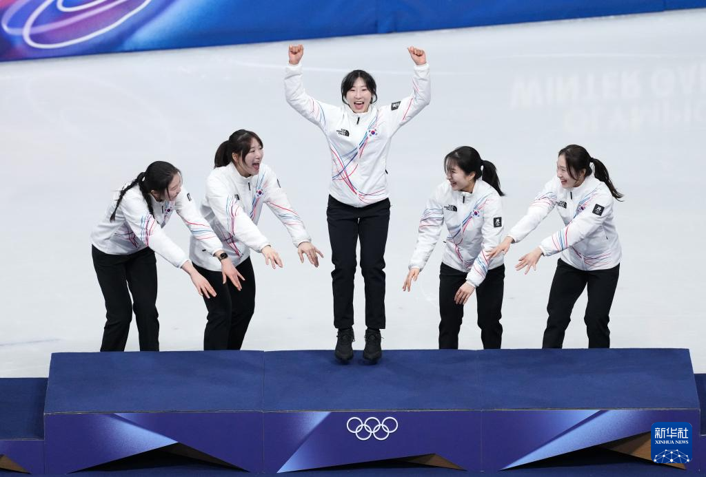 2月18日,冠军韩国队在颁奖仪式上。