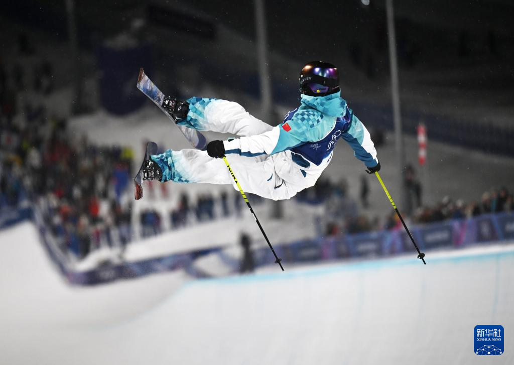 2月19日,中国选手谷爱凌在比赛中。她晋级决赛。