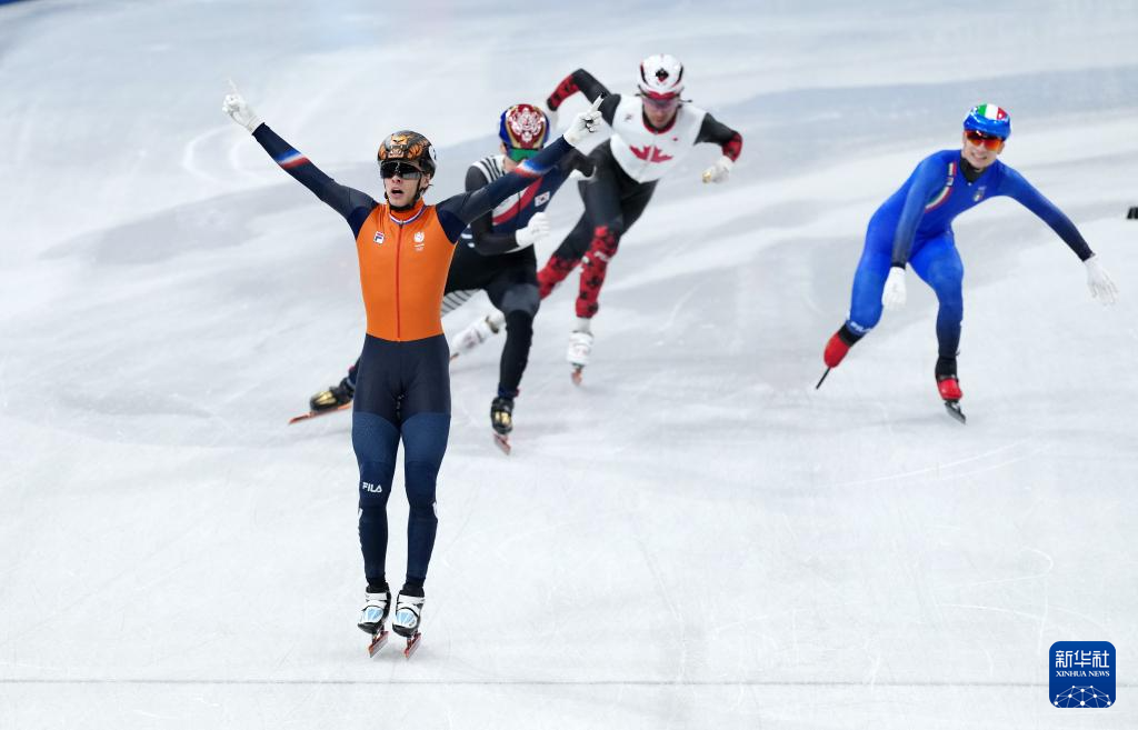 2月20日,荷兰队选手延斯·范特·沃特在冲线后庆祝。