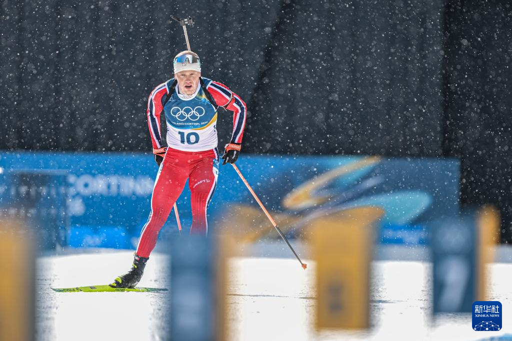 当地时间2月20日,米兰-科尔蒂纳冬奥会冬季两项男子15公里集体出发比赛在意大利安泰塞尔瓦举行。