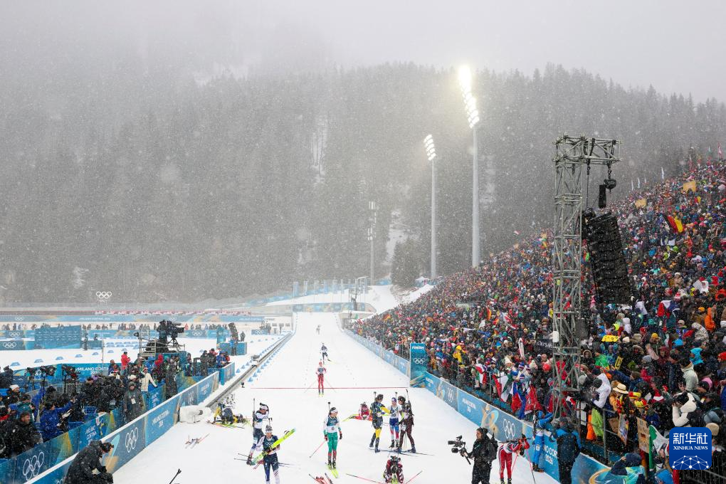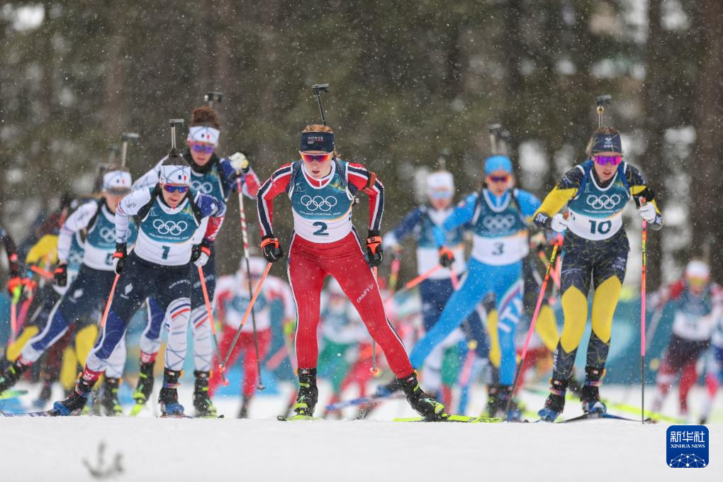 当地时间2月21日,米兰-科尔蒂纳冬奥会冬季两项女子12.5公里集体出发比赛在意大利安泰塞尔瓦举行。