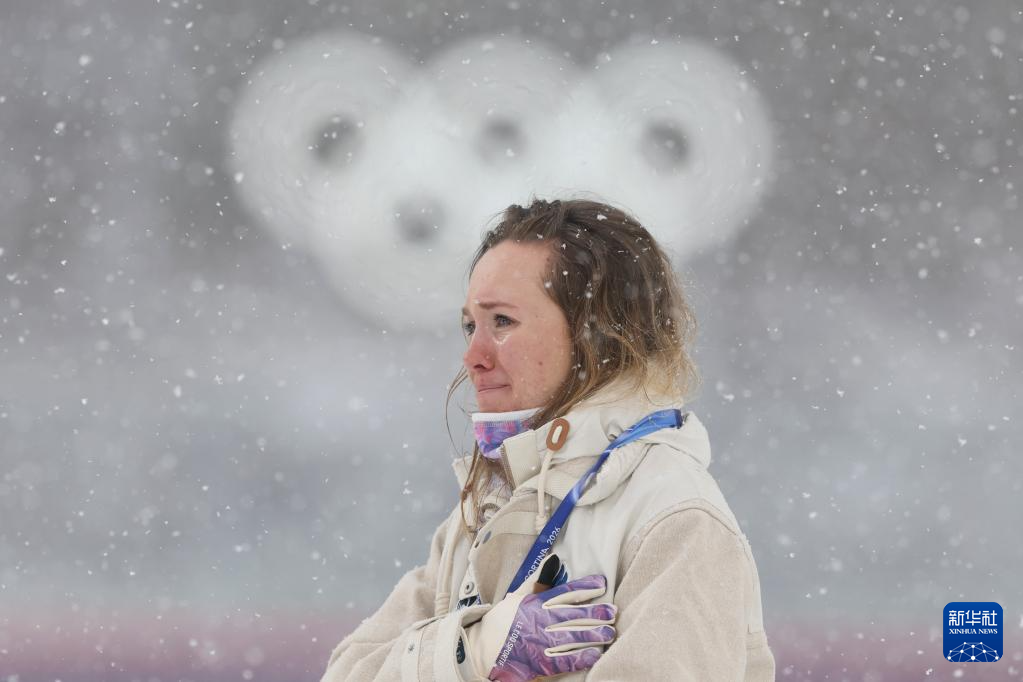 2月21日,冠军法国选手米舍隆在颁奖仪式上落泪。