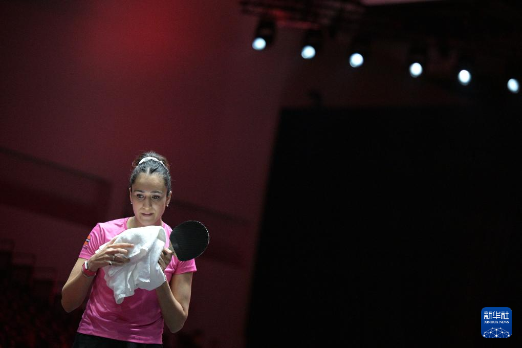 2月23日,马妮卡·巴特拉在比赛间隙休息。