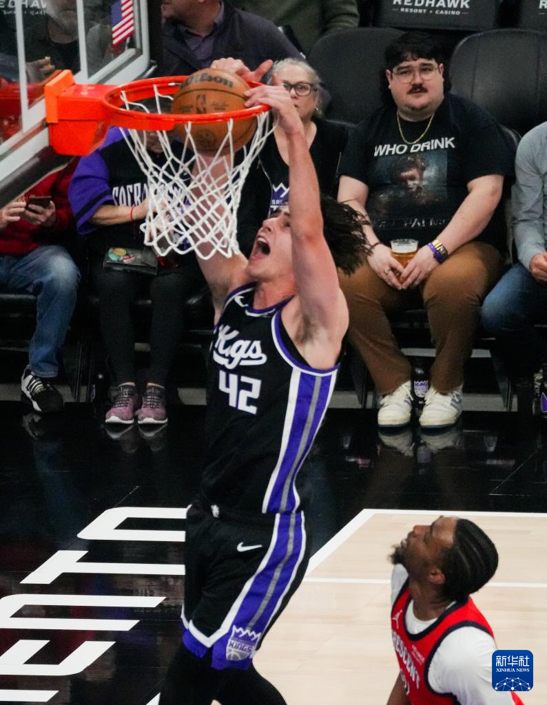 3月5日,国王队球员尤班克斯(右)在比赛中扣篮。