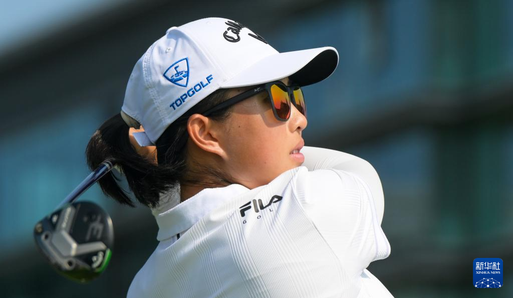 3月5日,中国选手何沐妮在比赛中发球。首轮比赛结束后,她以71杆、低于标准杆1杆的成绩暂列并列第二十六。