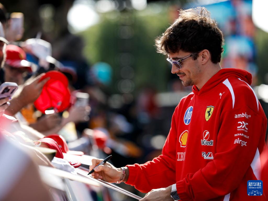 3月8日,法拉利车队摩纳哥车手勒克莱尔在正赛前与观众互动。