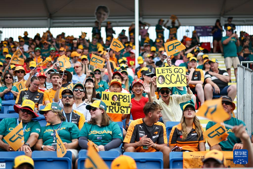 3月8日,车迷在赛前为主场车手、效力迈凯伦车队的澳大利亚车手皮亚斯特里助威。