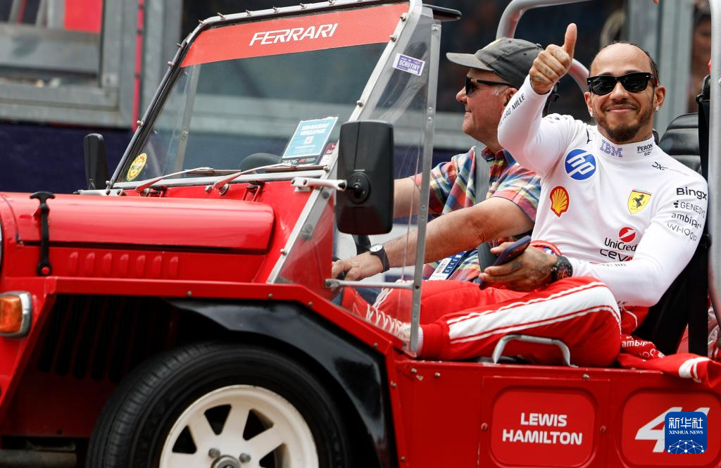 3月8日,法拉利车队英国车手汉密尔顿在巡游中。