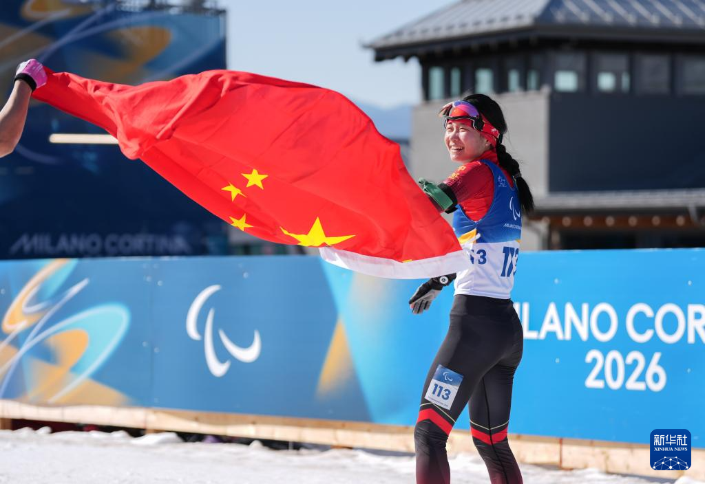 当地时间3月8日,在意大利泰塞罗举行的米兰-科尔蒂纳冬残奥会冬季两项女子中距离(视障)比赛中,中国选手王跃夺得冠军。