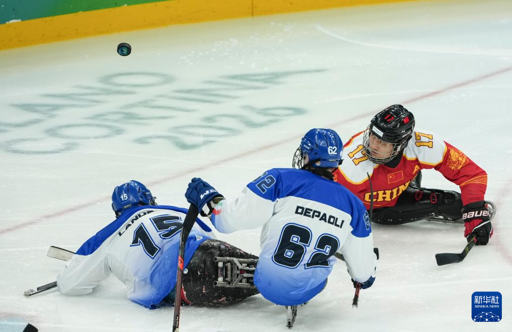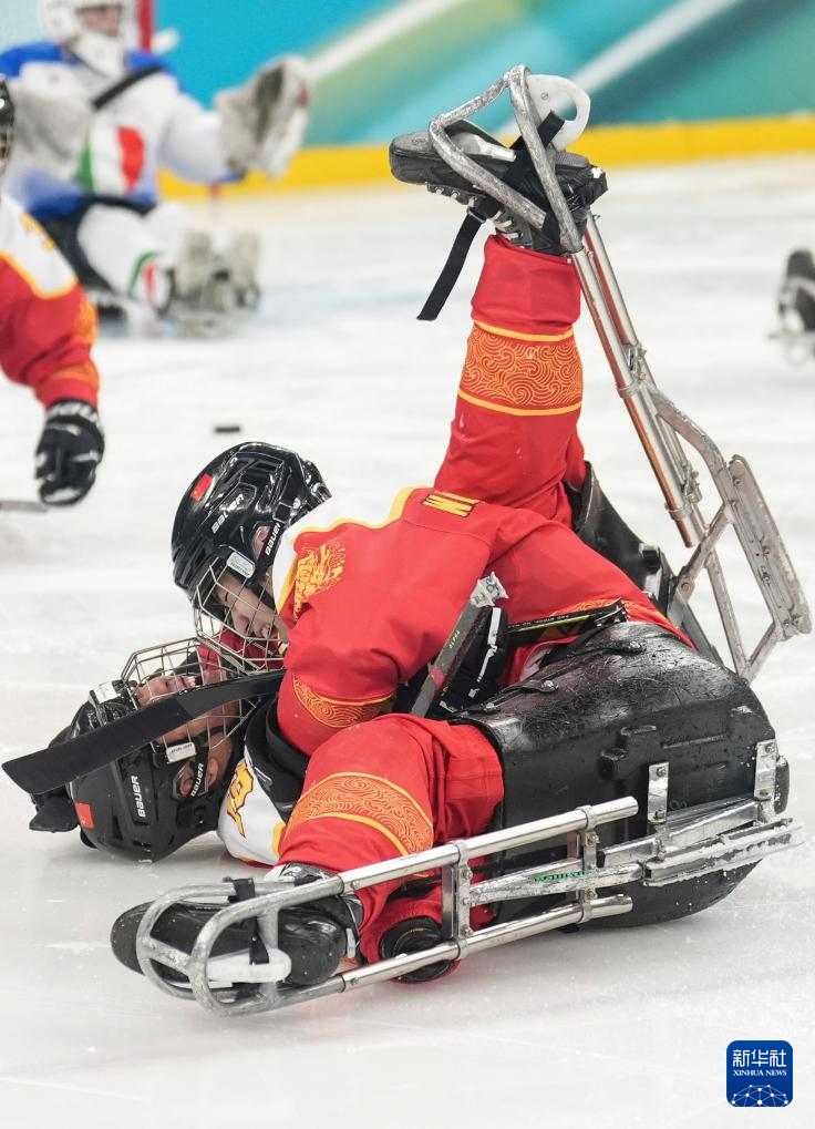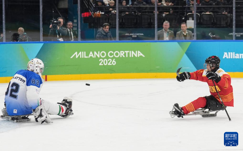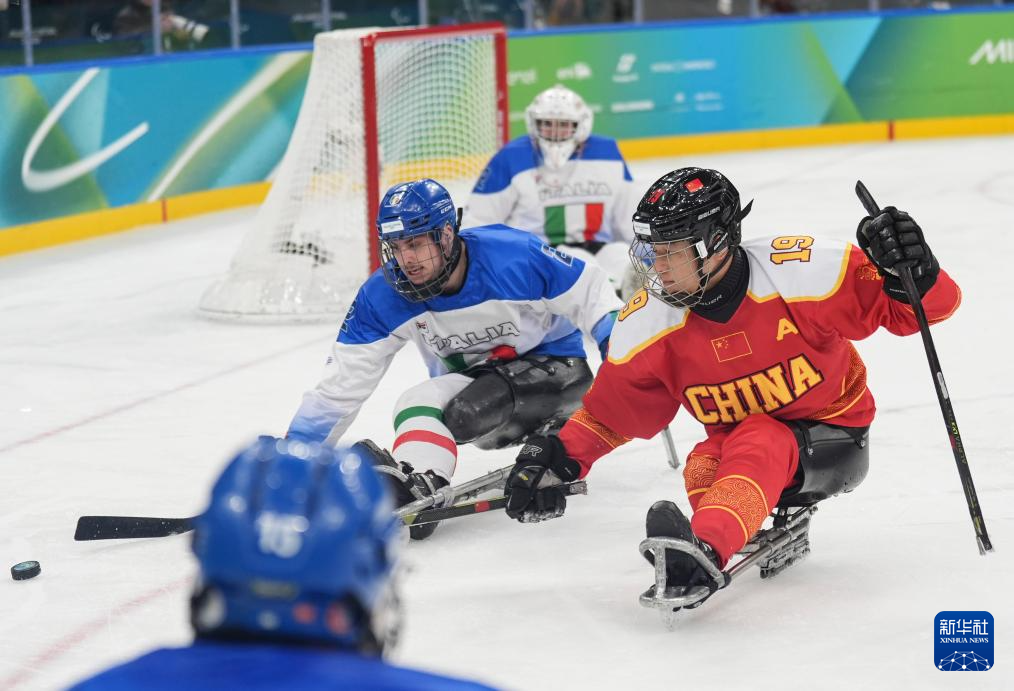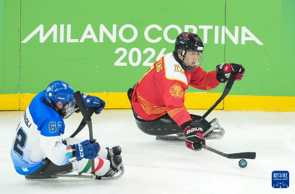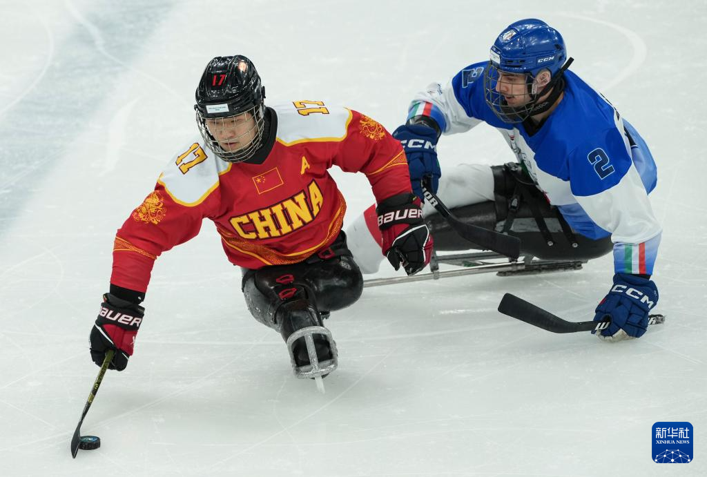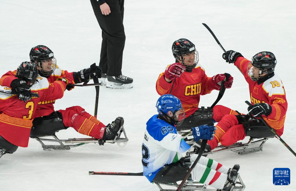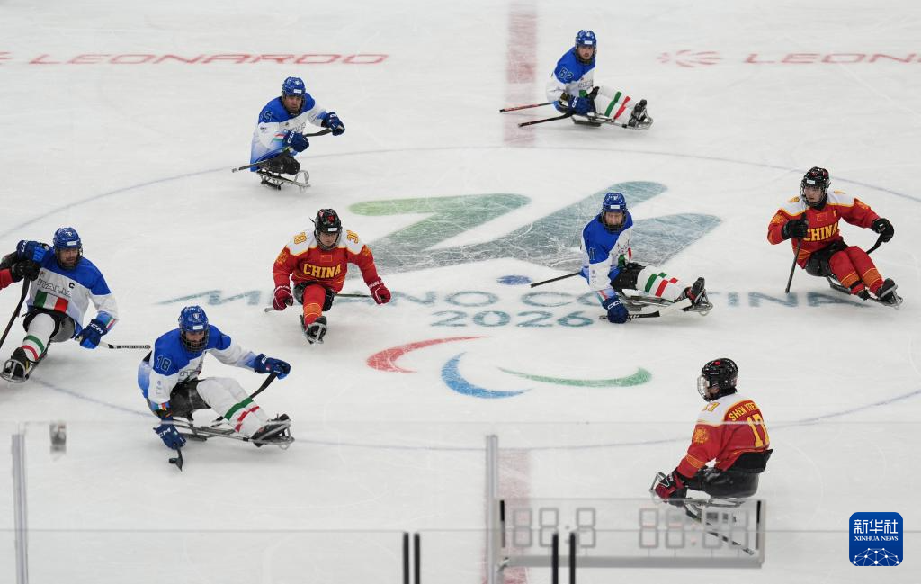 当地时间3月9日,在意大利米兰举行的米兰-科尔蒂纳冬残奥会残奥冰球小组赛A组比赛中,中国队11比1战胜意大利队。