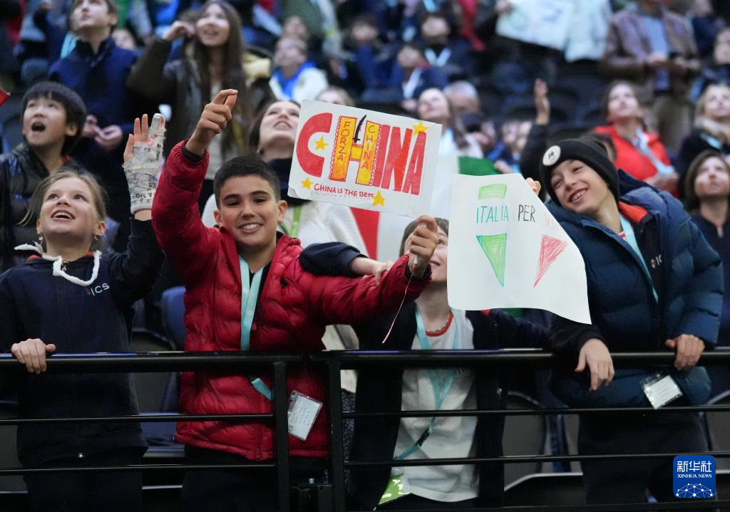3月9日,来自米兰一所国际学校的学生在场边为双方球员加油。