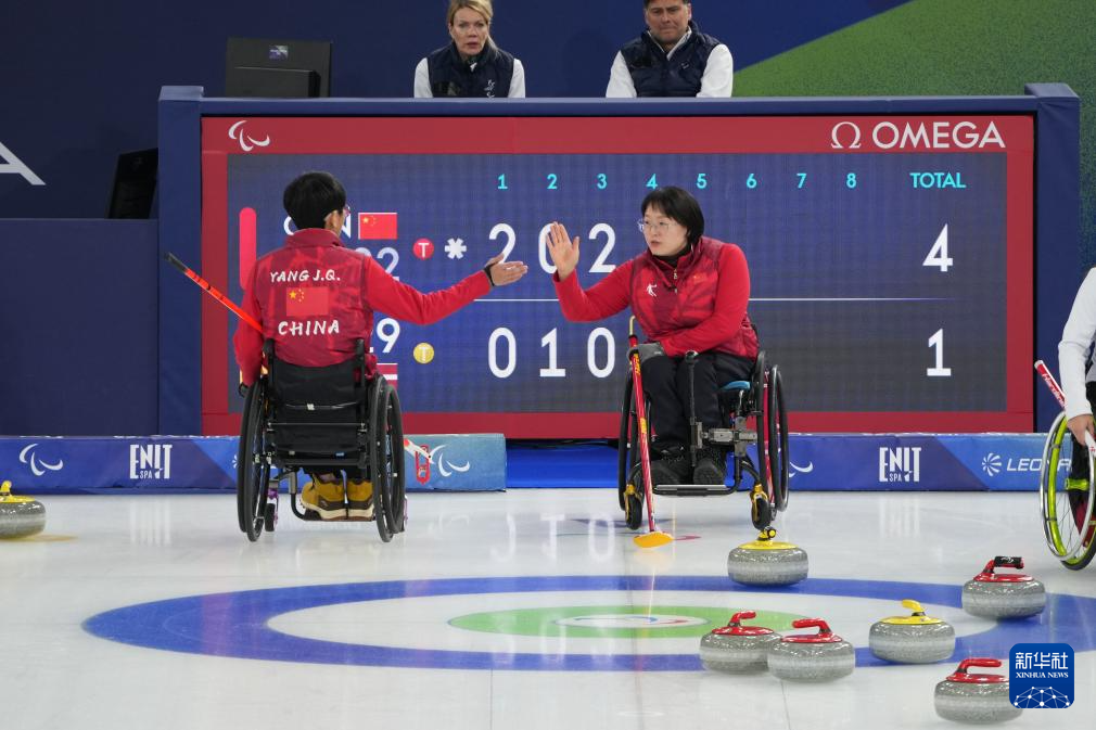 当地时间3月10日,在意大利科尔蒂纳举行的米兰-科尔蒂纳冬残奥会轮椅冰壶混双半决赛中,中国队8比3战胜拉脱维亚队,晋级决赛。