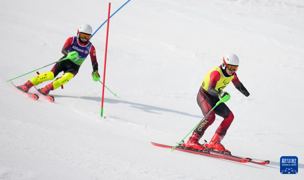 3月10日,中国选手王行懂(右)和引导员陈治成在比赛中。最终,王行懂获得第六名。