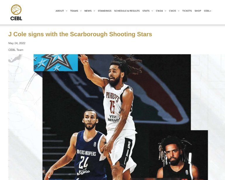2022年J.Cole曾加入一家加拿大俱乐部,参加加拿大男子篮球职业联赛。