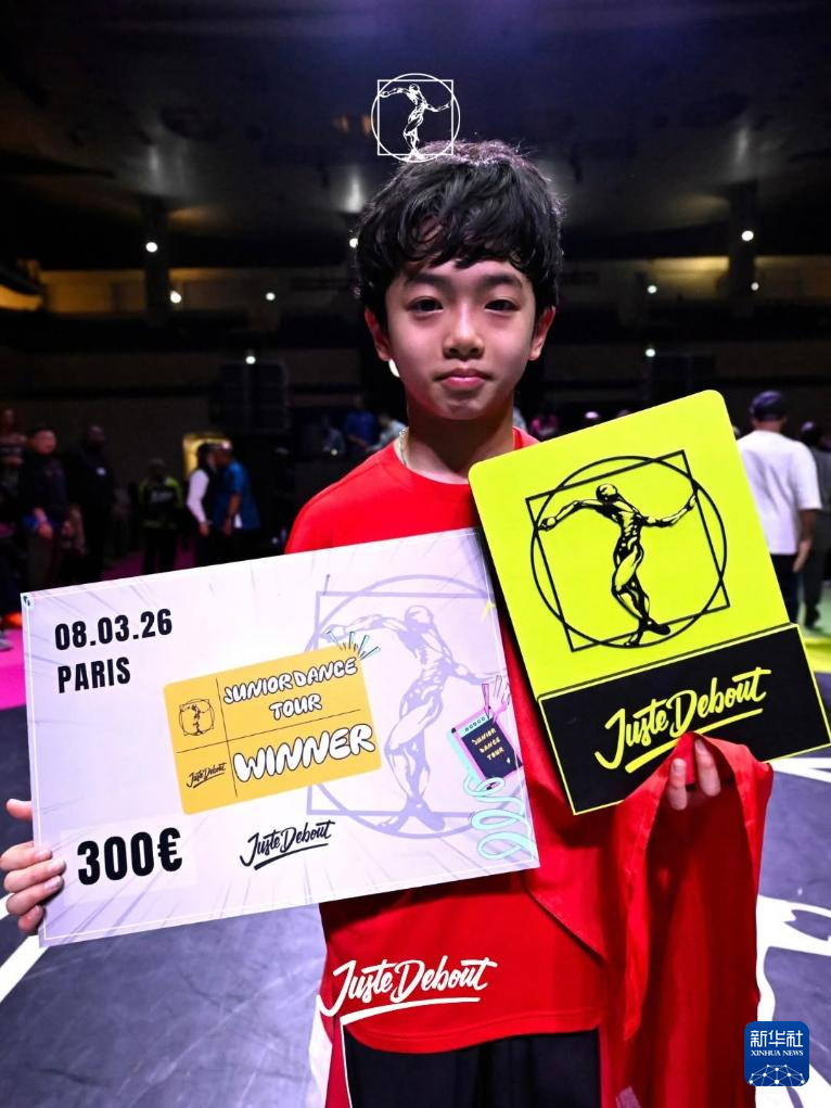 当地时间3月8日,13岁的中国重庆少年李勇秋在法国巴黎举行的Juste Debout(简称JD)2026总决赛上,凭借一套融合醉拳与太极的霹雳舞,以头部倒立定格完成高难度收势,夺得少儿组全球总冠军。