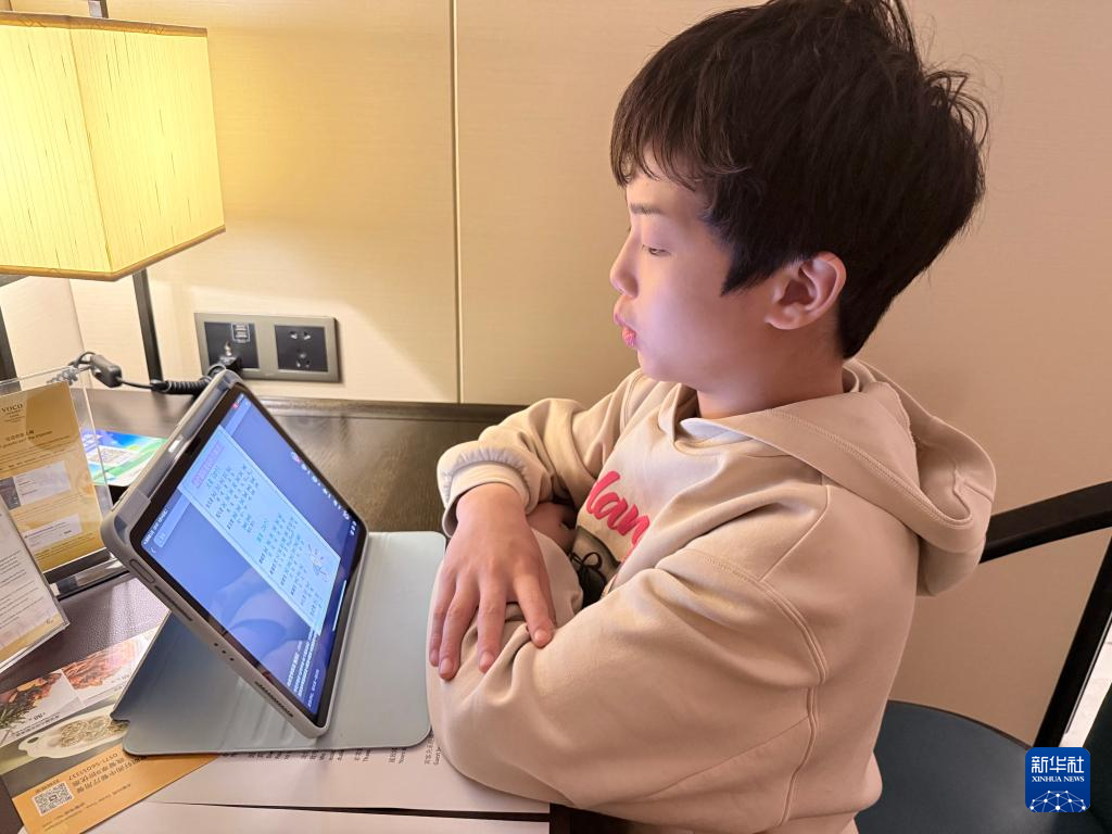 4月14日,李勇秋外出比赛期间,在酒店线上学习课程。