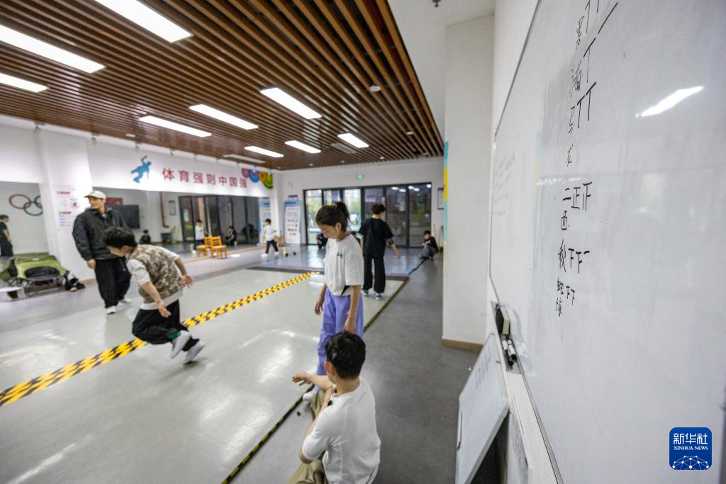 4月13日,在重庆市沙坪坝区霹雳舞队训练基地,霹雳舞队队员进行日常训练。